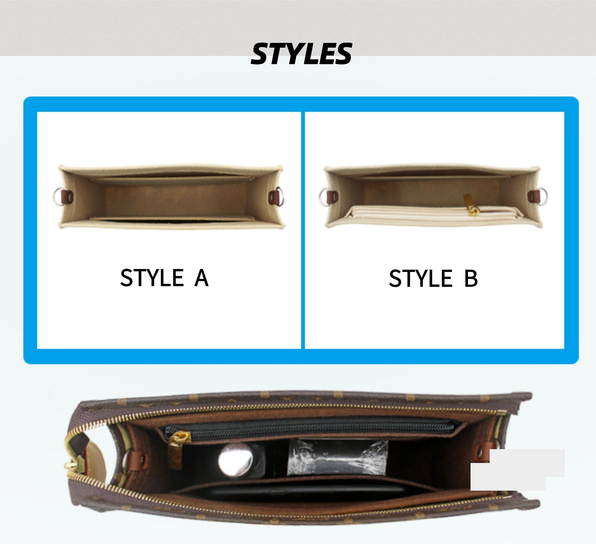 Designed to fit most small bags and purses, it is excellent to wear with models such as Pochette Accessoires, Eva, Milla Clutch, Favorite, Speedy Nano, Felicie, Alma BB, Pallas Clutch, Mini Speedy Marmont Bucket Bag and lots more.